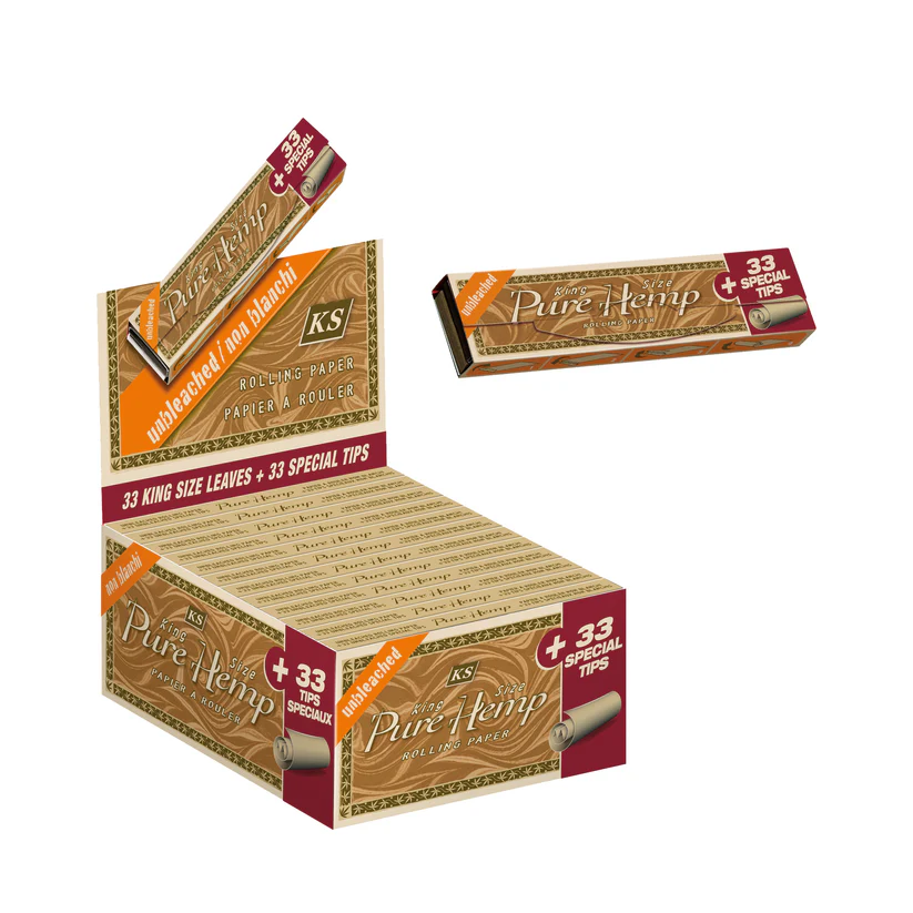 Our Pure Hemp Unbleached King size (44mm wide) rolling papers with 33 tips are the perfect size a proper sesh or for crafting the perfect bat!